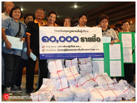 เครือข่ายองค์กรผู้บริโภคฟันธง...ร่างกฎหมายองค์การอิสระผู้บริโภคของรัฐบาลไม่อิสระจริง เดินหน้า ยื่น 12,000 รายชื่อเสนอกฎหมายฉบับของประชาชนต่อประธานรัฐสภาและรัฐมนตรีที่กำกับดูแลสำนักงานคณะกรรมการคุ้มครองผู้บริโภค เพื่อนำไปพิจารณาผลักดันให้เป็นกฎหมายของประชาชนเพื่อประชาชนอย่างแท้จริง
